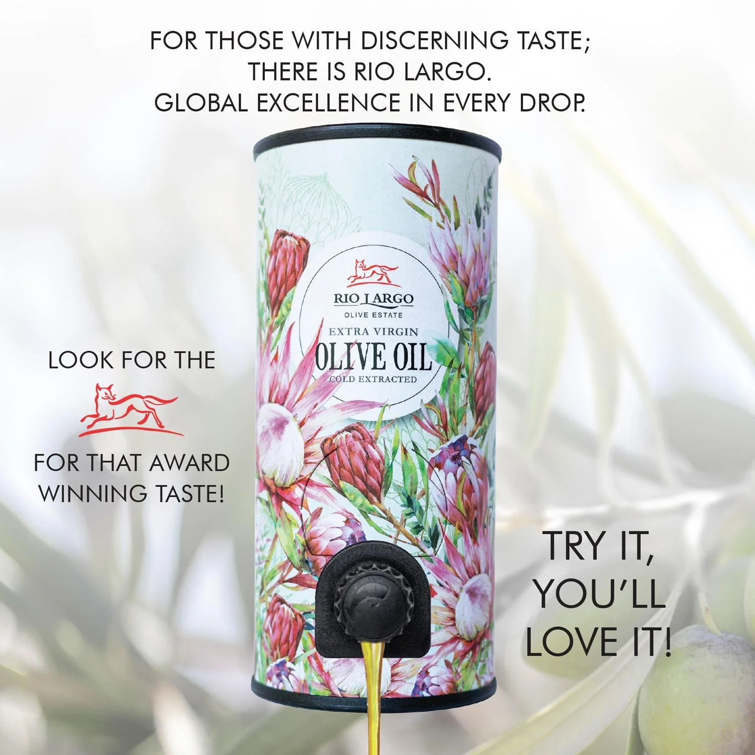 RIO LARGO is a blend of Italian-style cultivars, grown, handpicked, pressed, and bottled on this private estate. RIO LARGO is shared in beautifully designed bottles and on-tap decanters, ensuring freshness to the last drop. Whilst decanter designs may change from harvest to harvest, that same exceptional taste never fails to delight. Following biological farming methods, with respect for the environment and future generations. Now in a reusable decanter, available online only - you’ll love it! Tastings by appointment.